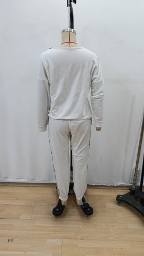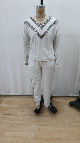 Kadın uzun kollu v yakalı pulpayetli viskon iki iplik bluz ve pantolon