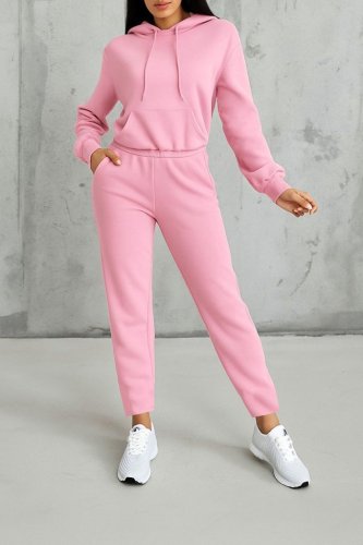 • Kadın uzun kollu kapşonlu bağcıklı üç iplik bluz ve pantolon ikili takım