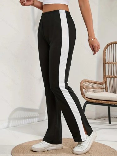• Kadın yüksek bel yan şerit detaylı yırtmaçlı viskon iki iplik pantolon