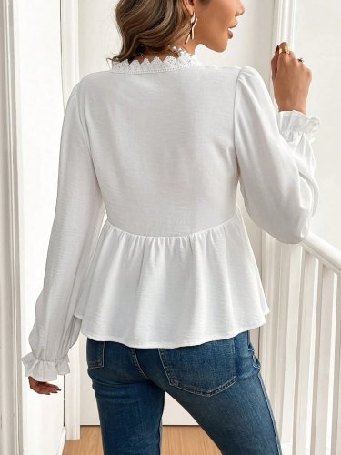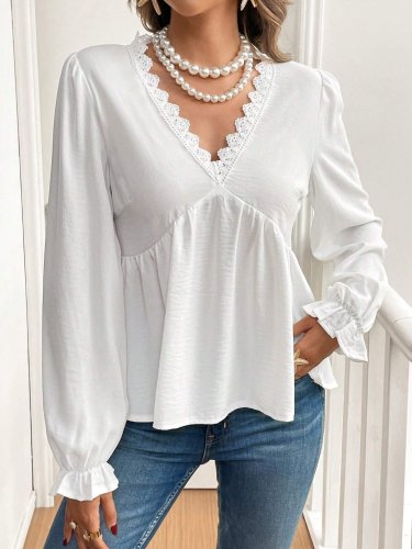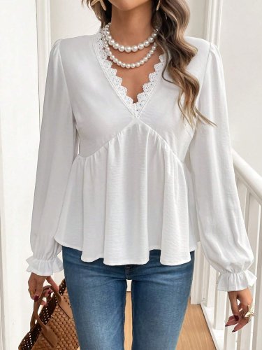 • Kadın uzun kollu v dantel yaka aerobin bluz
