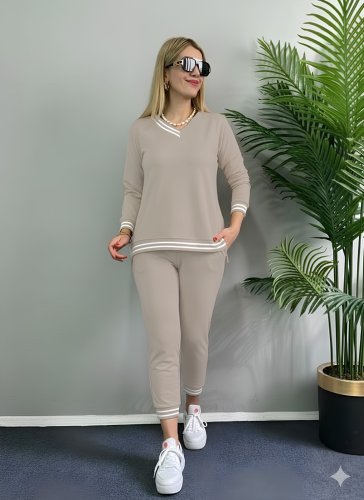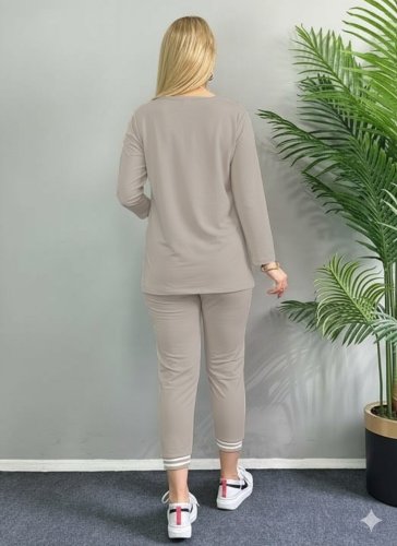 • Kadın uzun kollu ribana detay viskon iki iplik ikili takım