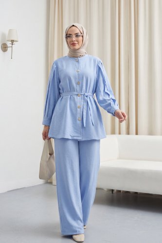 Karpuz Kol Beli Bağcıklı Pantolonlu Lena Takım Bebe Mavi